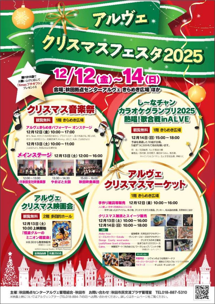 アルヴェクリスマスフェスタ2025は12月12日(金)~14日(日)まで開催中です。